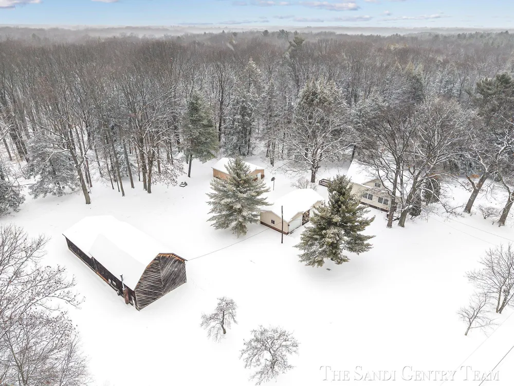 Set on 6 acres with a peaceful, wooded backdrop, this Grand Haven property offers the space, privacy, and flexibility that are hard to find. With room to spread out and a great layout for outdoor living and storage, it's an ideal setting for anyone looking for acreage along with multiple functional outbuildings. Step inside and you'll immediately appreciate the generous living space, with over 2,550 sq ft, 4 bedrooms, and 2 full baths. The main level features a comfortable living room filled with natural light, highlighted by warm wood accents and a fireplace that adds character and charm. Just off the living area is a dedicated dining room, creating an inviting space for everyday meals and gatherings. The layout flows into a spacious and functional kitchen with abundant wood cabinetry, generous counter space, and a large peninsula that's perfect for meal prep, serving, or casual seating. The dining area sits just off the kitchen and features sliding doorsthat lead out to a very large deck, making it easy to enjoy indoor-outdoor living and perfect for entertaining, grilling, and relaxing while taking in the peaceful views of the property. A full bathroom on the main floor adds everyday convenience. All four bedrooms are located on the upper level, including a spacious primary bedroom with lots of windows for natural light and a huge closet. A full bathroom on this level features an extended vanity with plenty of counter space and storage. The lower level adds even more versatility with a large family room and recreation space, offering plenty of room for movie nights, gaming, hobbies, a workout area, or additional flexible living space. Outside, the outbuilding package is a standout feature, including a detached 4-stall garage, a rustic barn measuring 28x76, and an additional garage/storage outbuilding measuring 36x28 with electric, a concrete floor, and a convenient slider door, making it ideal for workshop use, storage, or larger equipment. Numerous updates have been completed, including HVAC in 2008, renovate