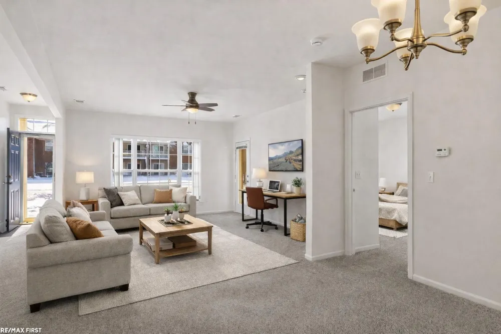 Looking for low-maintenance living that still fits your active, social lifestyle? This first-floor ranch condo checks all the boxes. From the community pool and tennis courts to the playground and clubhouse, you'll love having built-in ways to stay active, unwind, and connect with neighbors-without leaving home. Inside, the condo is spotless and move-in ready, with an open kitchen that's perfect for busy mornings or hosting friends. Granite counters, stainless steel appliances, and tons of cabinet space make it both stylish and functional. The spacious living room features a cozy fireplace and easy access to the patio-ideal for relaxing after work or enjoying warm summer evenings. The primary bedroom offers privacy with a full attached bath, walk-in closet, and its own doorwall to the patio. You'll also appreciate the first-floor laundry with plenty of storage, making everyday life simple and efficient. Best of all? Immediate occupancy-keys at closing-so you can skip the wait and start enjoying the lifestyle right away. This is easy living, done right.