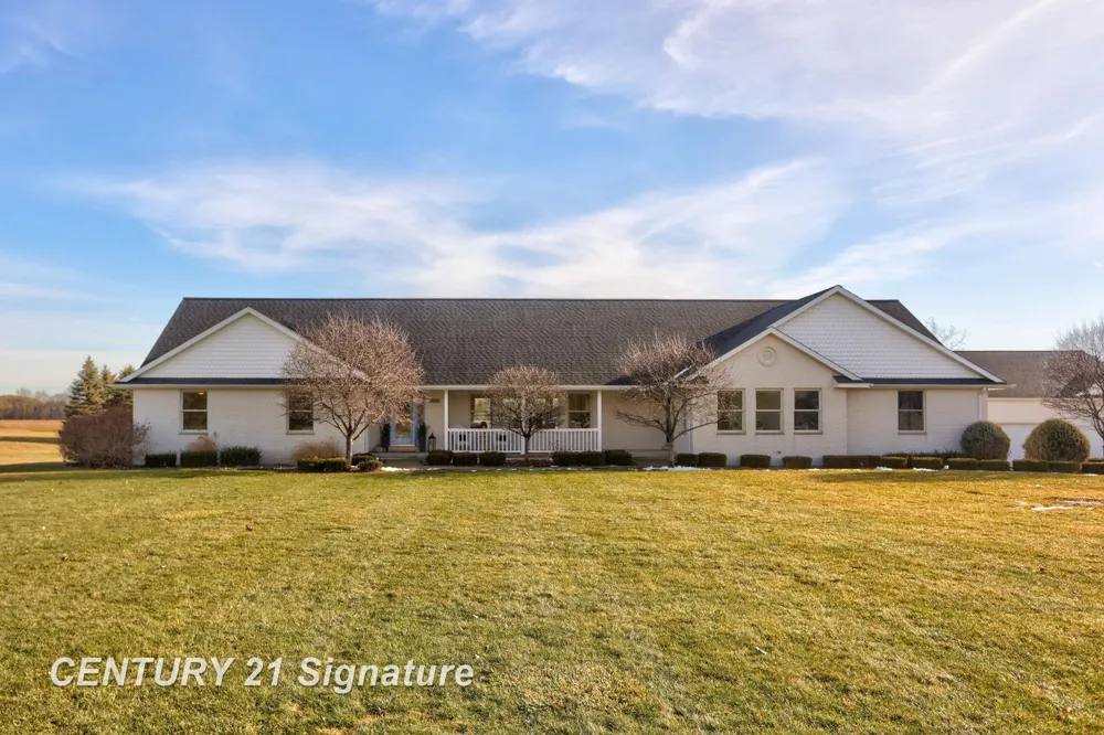 Stunning views and abundant space await in this 4 bedroom, 3 and a half bathroom home. Situated on over three acres, enjoy a fully stocked pond with Blue Gill and Bass, your own sandy beach and gazebo right in your back yard, and an outbuilding with over 2000 additional sq. ft. The home and outbuilding have a new roof (including tear-off, summer of 2025), and new appliances including stove/range, refrigerator, dishwasher and microwave. Inside, enjoy a bright, open concept layout with vaulted ceilings and a walk out basement leading to a paver patio, and full daylight windows. The finished basement also has in-floor radiant heat for added comfort and coziness. Modern comforts include instant on-demand tankless hot water and a spacious deck with covered patio over looking the serene water and grounds. Outbuilding is 2x6 construction on a block foundation, fully insulated, heated, 220V service, two garage doors including a 16 ft door, half bathroom and upstairs loft area. A rare combination of space, craftsmanship, and privacy, this property is ideal for luxury living and endless options.